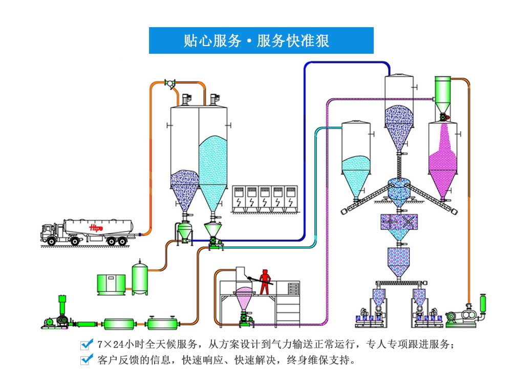 我们恒通粉体为客户定制了一条正压高强石膏粉气力输送系统,该项目参数水平距离20m、垂...